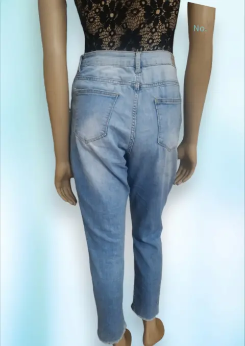 Jeans Distress Entubados Iris. Jeans Distress Entubados Iris, talla 9, color Azul Claro, estilo distresado, both y cierre de cremallera, 5-bolsillos clasicos, pretillas para cinturon, detalle de Piedras brilliantes al frente, Heche de algodon, poliester y raron, mide 37cm de cintura, 53cm de cadera, 63cm de entrepierna, con 92cm de largo de la cintura hacia abajo sin bastilla, en buen estado cosmetico.