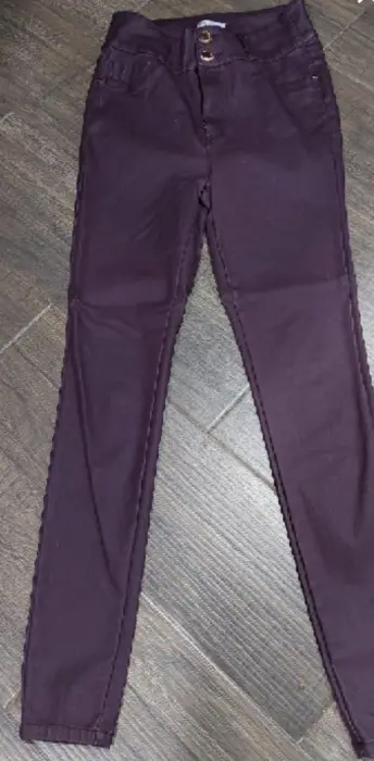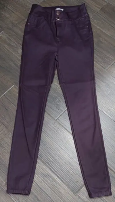 Jeans Efecto Encerado. Jeans efecto encerado en color morado, entubados, nuevos sin etiqueta. Imagen de referencia.