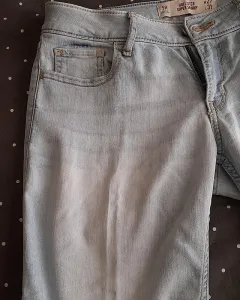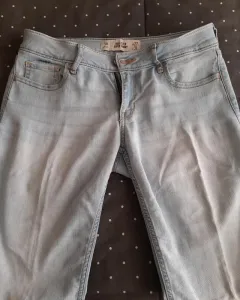 Jeans de mezclilla azul claro, corte a la cadera y entubado. Sin detalles