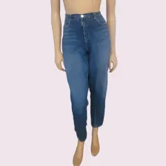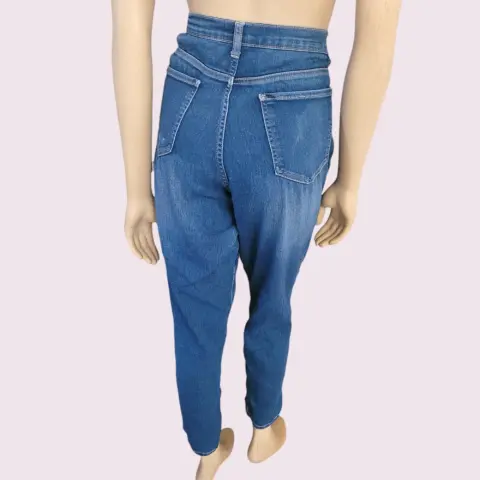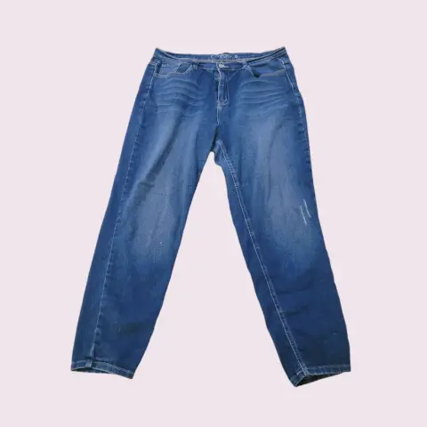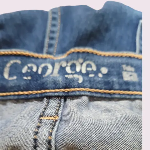 Jeans Entubados George, talla 36, color azul distress, estilo clásico, 5-bolsillos, pretillas para cinturon, hecho de algodón y elastano, mide 40cm de cintura, 45cm de cadera, 67cm de entrepierna con 96cm de largo de la cintura hacia abajo en buen estado cosmetico.