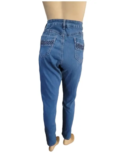 Jeans Entubados Lings, talla Extra grande 15/16, color azul marino claro, estilo clásico, 5-bolsillos, pretillas para cinturon, botones metalicos con logo, hecho de algodón y poliéster, mide 38cm de cintura, 52cm de cadera, 74cm de entrepierna con 99cm de largo de la cintura hacia abajo en buen estado cosmetico.