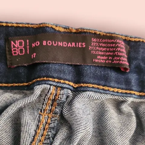 Jeans entubados No Bundaries, talla extra grande(17), color Azul Marino, estilo clasico,classic, 5-bolsillos 2 de ellos faux, pretillas para cinturon, cierre y boton, Heche de algodon, mide 39cm de cintura, 59cm de cadera, 67cm de entrepierna con 95cm de largo de la cintura hacia Abajo en buen estado cosmetico.
