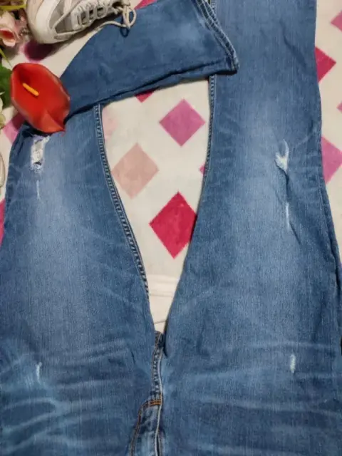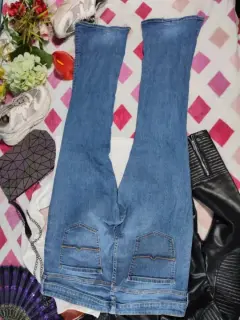 •Te interesa? Escucho ofertas•Deseas varias prendas? armo tu paqueteJean's azul medio, acampanados (Flare), ligero stretch, tiro medio (queda a la altura del ombligo). Pequeños rasgados al frente. Bolsillos al frente y atrás. Talla 13 - 15.