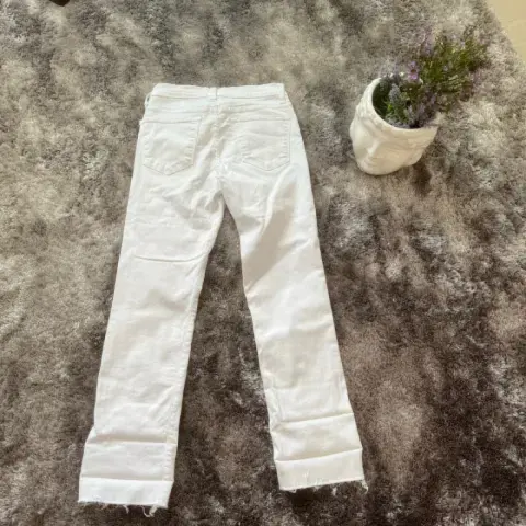 Jeans Flying Monkey blancos. Estos jeans son de una tela stresh muy suave, son de botones al frente, talla 26, tiene aún detalle de donde le quite la etiqueta y con una leve mancha amarilla