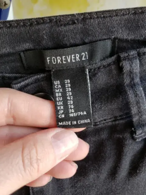 Jeans Forever 21 negro. ⚡Bonito pantalon de mezclilla ⚡Color negro ⚡Talla 29⚡Marca Forever 21⚡Es tipo skinny, se ve muy coqueto Cintura: 34 cm. Cadera: 40 cm.Largo: 99 cm.