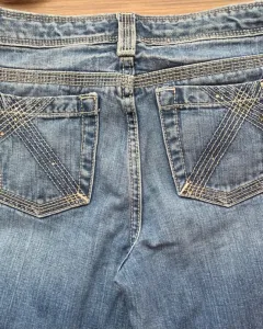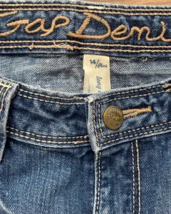 Jeans Gap acampanados cintura media100% algodón. Es talla 14 Plus y tiene una extensión en la cintura para hacerlo un poco más grande en una de las imágenes se puede apreciar.Tiene 4 bolsas. No tiene ningún detalle de uso o desgaste en la tela.Cintura 40 cmCadera 44 cm Largo 80 cm.