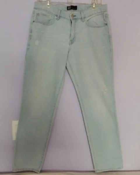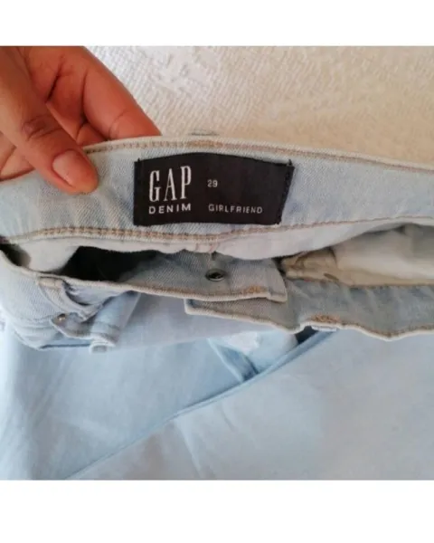 Jeans GAP DENIM GIRLFRIEND. Talla: 29. Algodón stretch.MEDIDAS DE LA PRENDA:Cintura: 42 cm. Cadera: 56 cm. Largo tiro (frente): 26 cm. Largo tiro (trasero): 35 cm.Largo total: 98 cm.Largo pierna interior:75 cm. Ancho pata (medido en el tobillo): 18 cm.