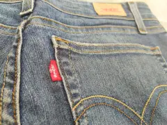 Jeans Levi's (genuinely crafted), color azul, cuatro bolsillos, corte recto, botones de frente, talla 9