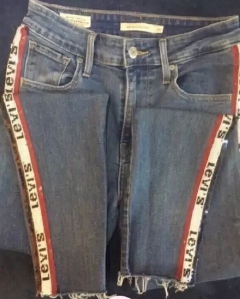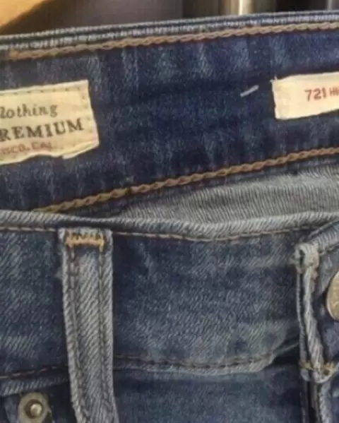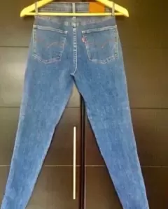 Jeans Modelo de colección con cinta en lentejuelas a los lados, decorando con el nombre Levi’s, y ruedos deshilados. Modelo 721 W26. Cintura 32 ctm Cadera 40 ctm Largo 90 ctm Es strech la cintura estirada llega aprox a 38 y cadera 48 ctm. Tiro medio, tiro parte delantera 25ctm y 34 la parte trasera.