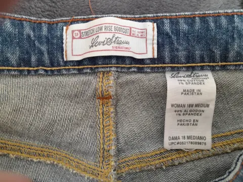 Jeans Levi's Signature 18. Hermoso jeans Levi's Signature para dama mezclilla, pierna ancha, sin detalles, stretch low rise bootcut, con botón y cierre, talla 18.