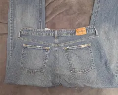 Hermoso jeans Levi's Signature para dama mezclilla, pierna ancha, sin detalles, stretch low rise bootcut, con botón y cierre, talla 18.