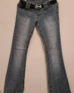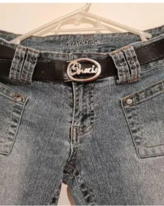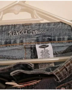 JEANS DE MODA CORTE MEDIA CAMPANA!! ENTALLE STRECH RESALTA MUSLOS!! CORTE A LA CADERA!! SENSUALES TALLA:9!! CINTURON DE REGALO!!SIN BOLSAS PARA RESALTAR POMPA MUY BONITA HORMA!! AZUL GRISACEO!! MARCA: REVOLT!! DE IMPORTACION!!