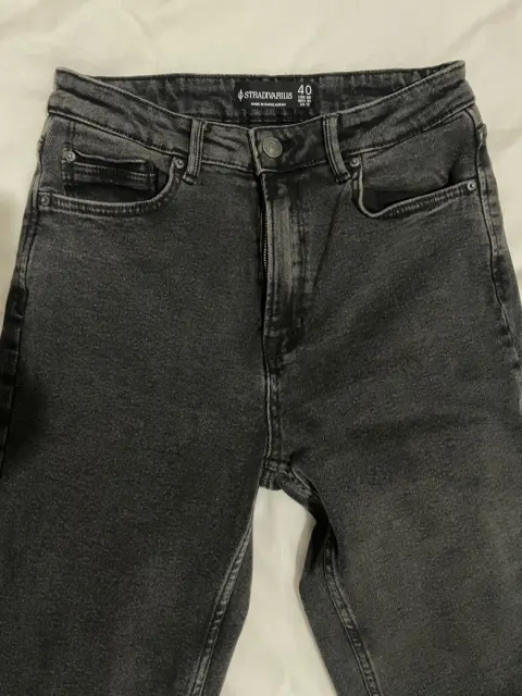 Jeans mom fit Stradivarius Talla 40Lo usé una vez, en excelente estado, no tiene ningún detalle El color es más oscuro del que se ve en las fotos Ligeramente stretch Cierre y botón funcionales