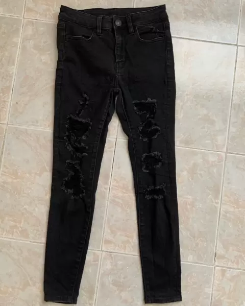 Jeans negro American eagle. Jeans negro con detalles de rotura Estilo entubado stretch