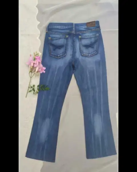 Jeans azules de corte recto, frente con estilo desgastado, cinco bolsillos, talla 7 MX