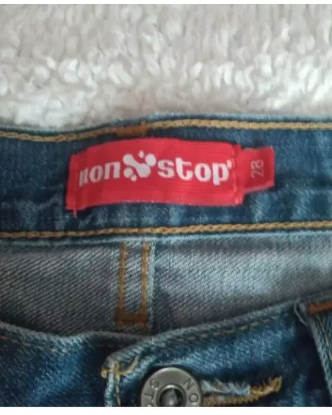 Jeans nonstop. Pantalón marca non stop talla 28 a la cadera, tiene una ligera mancha en la pierna derecha nada que afecte al uso, con botón y cierre funcional, la entre pierna no esta gastada