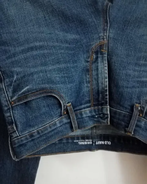 Jeans Old Navy talla M. Jeans de cinco bolsas, trabillas para cinturón, bajo con doblez, en perfectas condiciones.