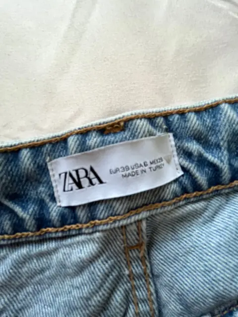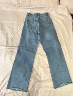 Jeans azules, pierna amplia, talle largo, sin bastilla, así viene el modelo.