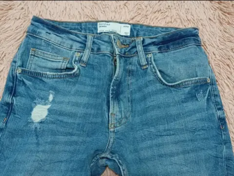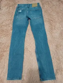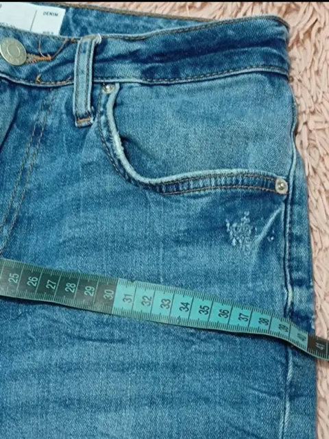 Lindo jeans berhka, rasgado, hace bonita figura,está en buen estado, es recto pero queda justo de las pantorrillas, estira, las medidas están en las fotos, dice talla 28 pero queda amejor a 25-26
