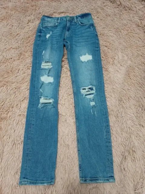 Jeans rasgados Bershka. Lindo jeans berhka, rasgado, hace bonita figura,está en buen estado, es recto pero queda justo de las pantorrillas, estira, las medidas están en las fotos, dice talla 28 pero queda amejor a 25-26