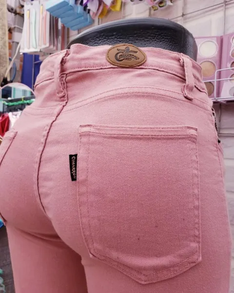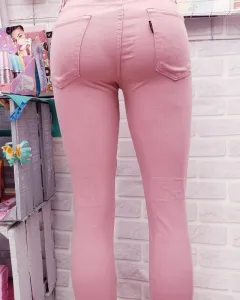 Jeans rosa. Pantalon rosa sin detalles con bolsillos traseros y delanteros