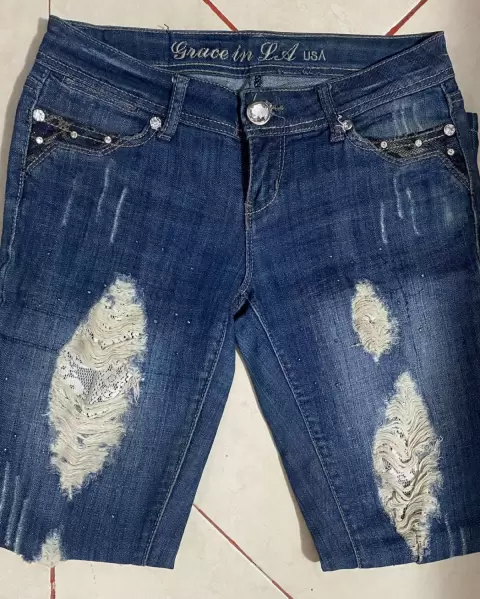 Jeans roto. Jeans roto con detalles de encaje al frente, stretch, tela super cómoda