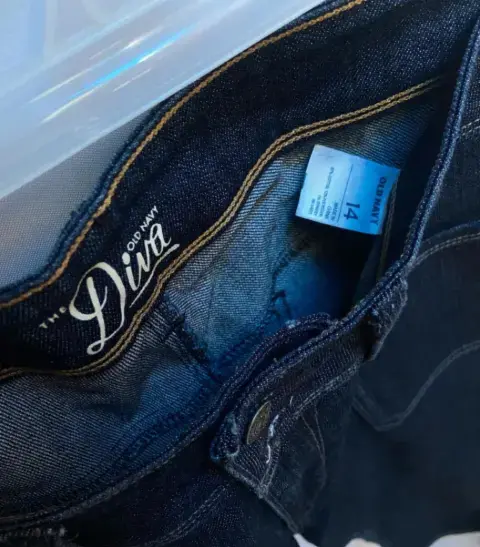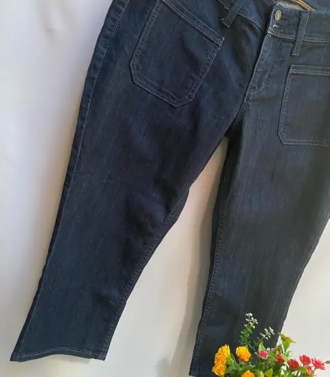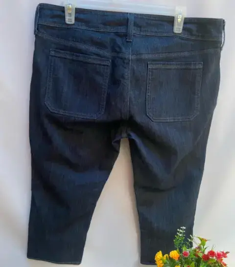Jeans skinny azul marino en tela mezclilla y stretch. Dos bolsas tipo parche delanteras, dos botones y cierre de metal.En espalda lisa, dos bolsas traceras.Talla: M (30-32).Marca: OLD NAVY