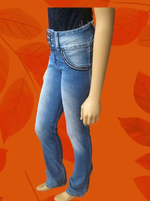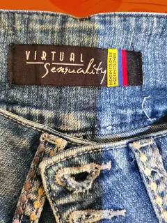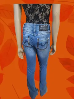 Jeans Skinny Virtual Sensuality, talla extra chica, color azul deslavado, estilo clasico con 5-bolsillos 2 de ellos Faux, cierre y 3-botones, detalles engravados, en frente y bolsillos traders, pretillas para cinturon, linea colombiana, Heche de algodon, miden 30cm de cintura, 42cm de cadera, 81cm de entrepierna con 106cm de largo de la cintura hacia abajo en buen estado cosmetico.