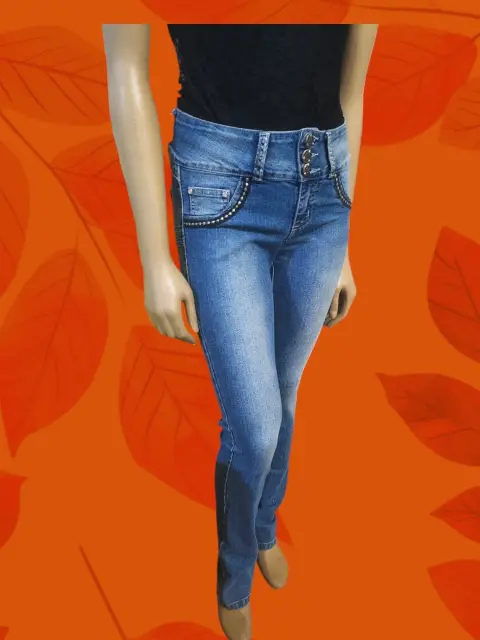Jeans Skinny Virtual Sensuality. Jeans Skinny Virtual Sensuality, talla extra chica, color azul deslavado, estilo clasico con 5-bolsillos 2 de ellos Faux, cierre y 3-botones, detalles engravados, en frente y bolsillos traders, pretillas para cinturon, linea colombiana, Heche de algodon, miden 30cm de cintura, 42cm de cadera, 81cm de entrepierna con 106cm de largo de la cintura hacia abajo en buen estado cosmetico.