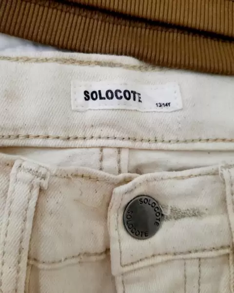 Jeans marca solocote Color arena, tiro alto, corte rectoEn excelente estado Talla 13 o 14 años Y en adulto seria xs