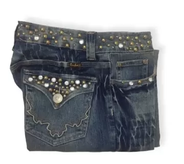 Marca: BarbaraTalla: SMedidas: 38 cm de Cintura, 98 cm de Largo, 26 cm de TiroColor: AzulMaterial: 98% Algodon 2% LicraCon pedreria