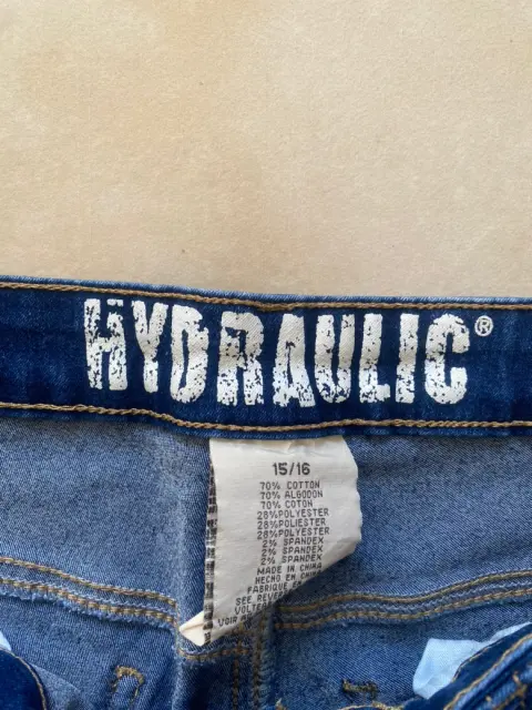 Jeans strech tiro alto. Padrísimos jeans con efecto destruccion de Hydraulic, 1 puesta, cero detalles, es strech! Es a la cintura. Cero desgastados de la entrepierna, como nuevos !MEDIDAS:✅cintura🟰44 cm.✅cadera🟰51 cm.✅tiro🟰23 cm✅largo total🟰96 cm.