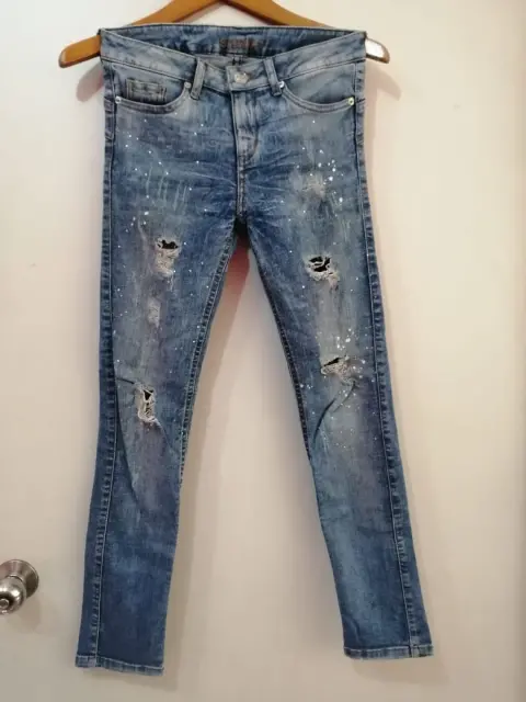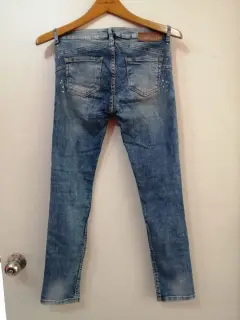 Padrísimos jeans con tiro bajo, lo pintado y roto es parte de el diseño, tiene brillos pequeños, push up colombiano amolda muy padre, talla 24