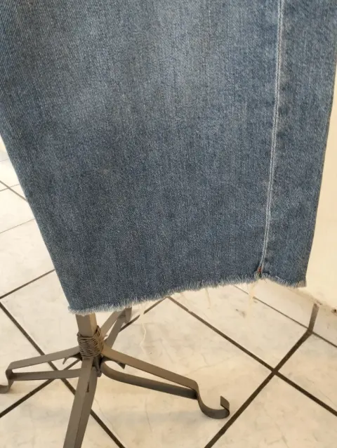 Jeans para de elefante de mezclilla deslavadas de botón con bolsas delanteras y traseras piernas deshiladas así es el modelo