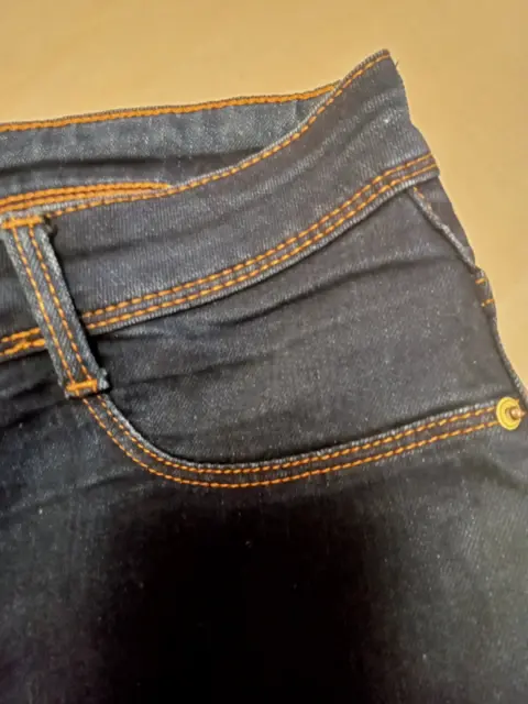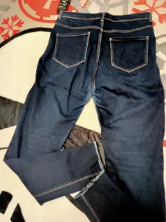 Jeans skinny,high waist,stretch, costura delantera simulando bolsillos, bolsillos reales en la parte trasera,ligero desgaste en la entrepierna,no rotos,color azul intenso,máximo de cadera 108cm,talla 30