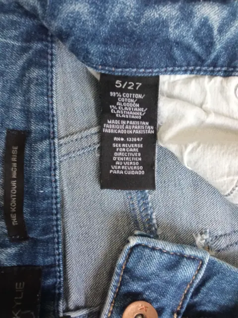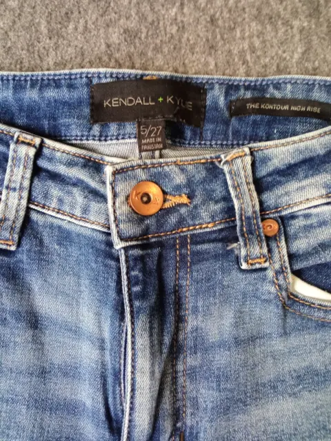 Kendall y Kylie Kontour Vaqueros de tiro alto talla 27. Small.Color azul con push up, usado en muy buen estado tal y como se ve en las imágenes, sin detalles. Material: 99% algodón y 1% elastano. Medidas: 92 cm de alto, 70 cm de ancho en cintura, 84 cm de ancho en cadera.