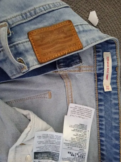 Levis 721 high rise skinny talla 32 o M. Pantalón de mezclilla talla 32 o M, azul con deslavado de detalla, modelo 721 high rise skinny