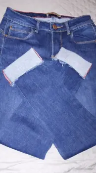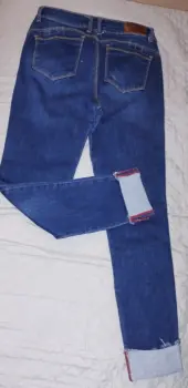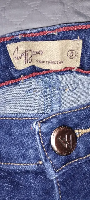 Bonito pantalón de mezclilla.Corte entubado.Talla 5Marca velvettBonito detalle en piernas simulando dobladillo ancho .
