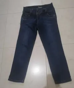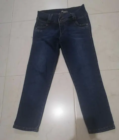Pantalón de mezclilla tipo pesquero, un poco arriba de la cadera, en talla 7 (pequeña - mediana) ideal para uso diario.