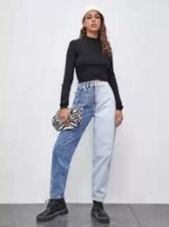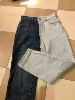 Mom jeans bicolor. Perfectos, en tendencia, nuevos, que no te falte en tu closet, talla XS/S, cintura 36, cadera 46, largo 96, no los dejes ir