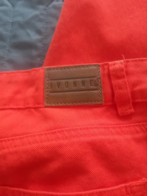 Hermosos jeans color naranja corte mom, a la cintura marca ivonne talla 10, quedan perfecto a talla 11, sin detalles.