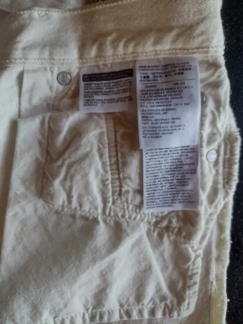 Talla 5-7 No tiene casi strech, pero está padrísimo. Lo compré hace tiempo, le quite etiquetas y todo y jamás me lo puse, ahora que me lo quise poner ya no me quedó, engorde y 😔 , tiene corte bota, o queda tipo mom algo así es el corte, es color entre beige y blanco. Muy bonito y diferente, resalta mucho la etiqueta rojita de Levi's 😊