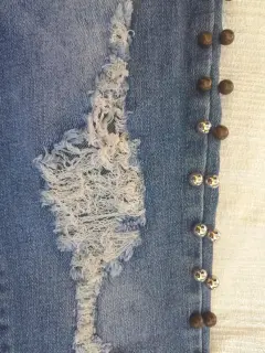 Pantalon. Pantalon con diseño rasgado en la parte de enfrente ,con detalle de pedrería por los lados