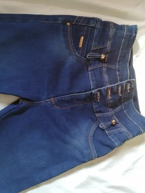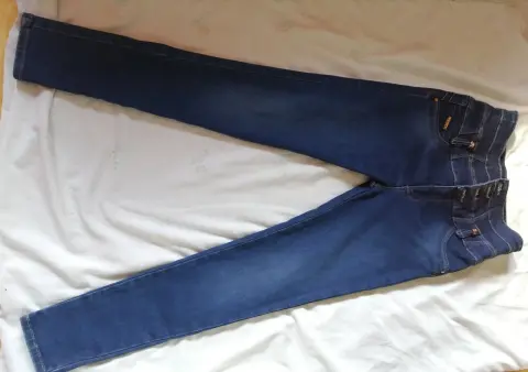 Pantalon azul nuevo medidas : 34 cm de ancho y 94 cm de largo, es tiro alto queda arribita de la cintura, queda a una talla 8 ó 9