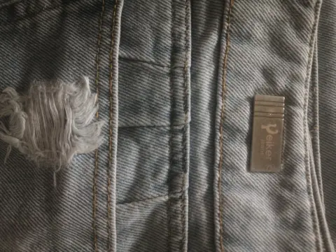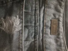Pantalón dama talla 6 mezclilla con rotos, de tiro alto y bueba orma, botones a la vista.
