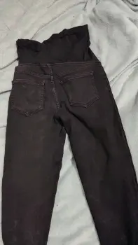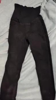 Pantalón de maternidad talla 7 pero estira la tela del pantalón, en la foto se ve decolorado pero en persona se ve totalmente negro.