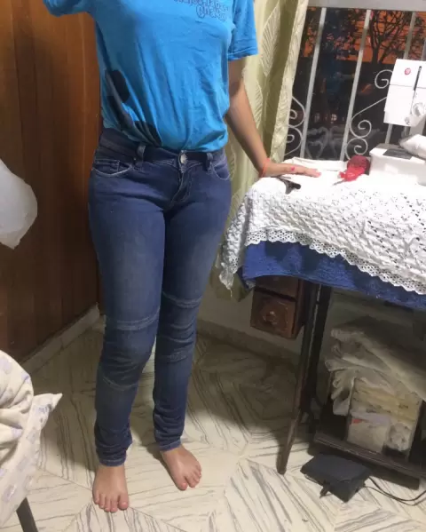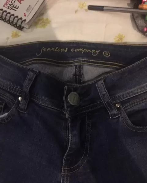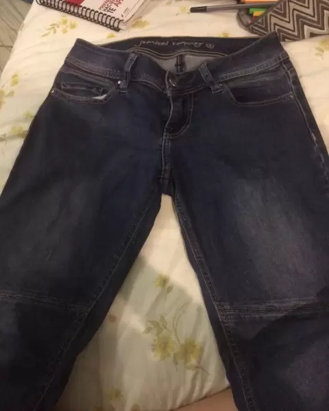 Pantalón de mezclilla. Azul,es talla 5, casi nuevo pocas usadas es cintura media, es strech, y tiene unas divisiones con hilo que lo hacen ver diferente y divertido. Sin ningún detalle :) lo deje porque me quedo chico. Medidas: 40 de cadera