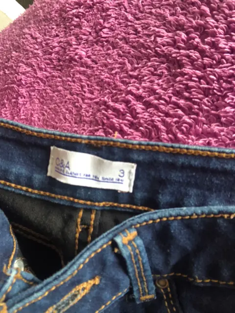 Stretch de mezclilla, color azul obscuro, talla 3 de marca c&a