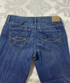Pantalón de mezclilla Abercrombie. Pantalón de mezclilla con poco strech, corte bota, con 4 bolsillos y algunos deslavados.Medidas/ cintura: 37 cm, cadera: 47 cm, tiro: 21 cm, largo: 108 cm