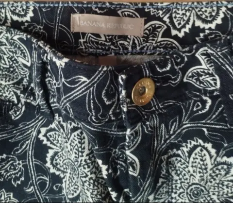 Pantalón de mezclilla estampado.. Padrísimo y moderno pantalón de mezclilla en color azul marino muy oscuro, casi negro combinado con blanco. En tela stretch.Viene a la talla.28 mexicana.